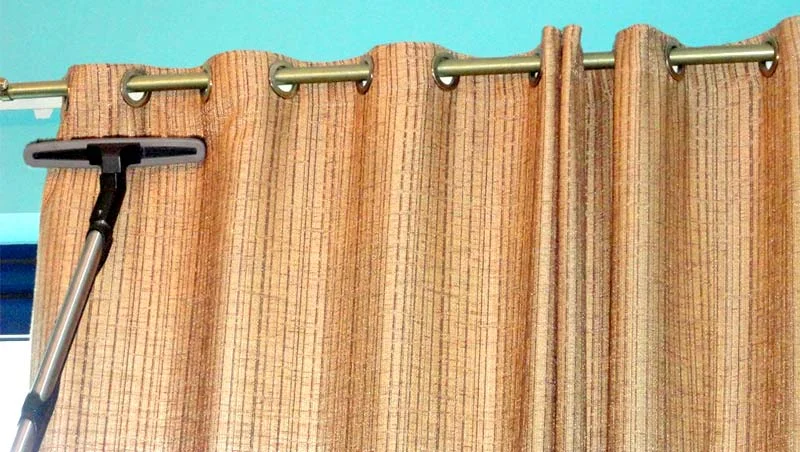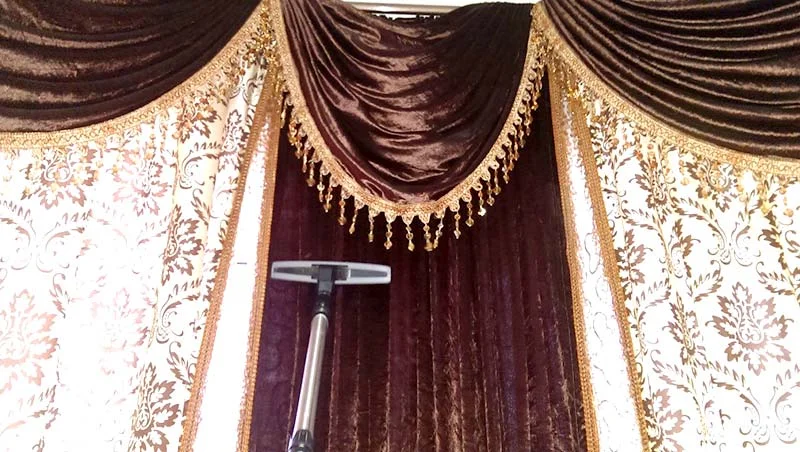 Curtains are cleaned in their original hanging position without removal or dismantling. Using specialized vacuum equipment: